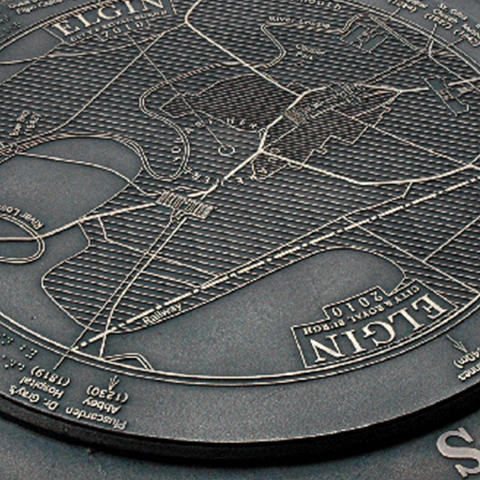 21" Diameter Etched Bronze plaque with painted recessed background.