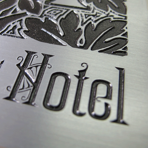 Etched plaques are a great option because the etching process permits exact reproduction of artwork for interior or exterior applications. Etched plaques are available in aluminum, brass, bronze, copper, zinc and stainless steel.